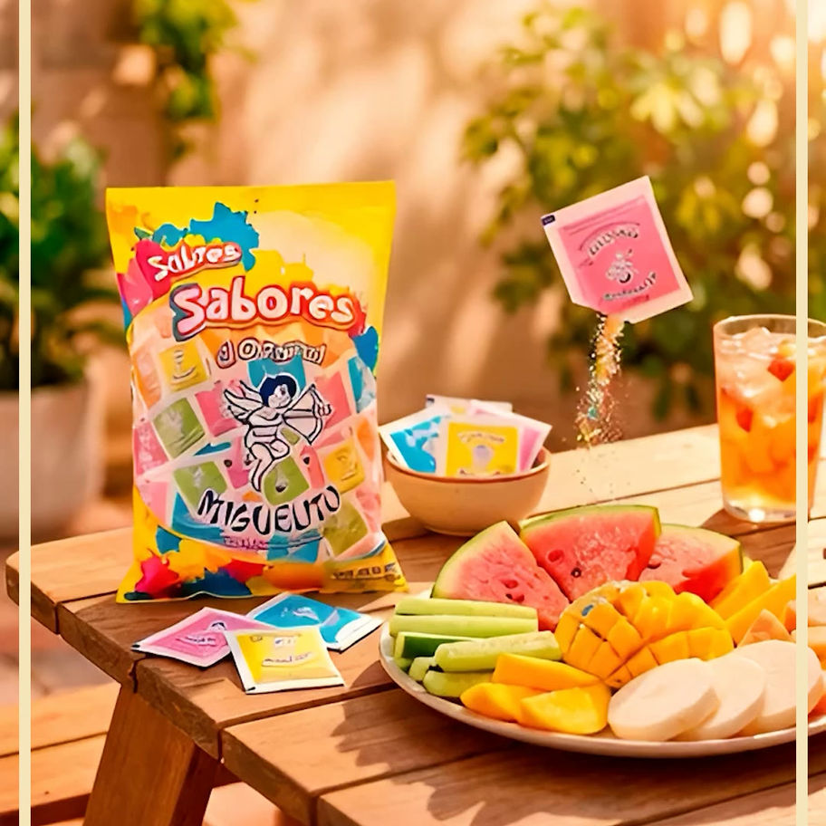 Disfruta la variedad y el sabor con Miguelito en Polvo Sabores en su presentación de 100 sobres individuales de 3 g. Este surtido ofrece diferentes sabores frutales con el equilibrio perfecto entre dulce y ácido, ideales para darle un toque divertido a frutas, botanas y bebidas. Gracias a su formato individual, es perfecto para fiestas, eventos, reuniones, loncheras escolares o negocios de snacks que buscan practicidad, higiene y variedad para todos los gustos.